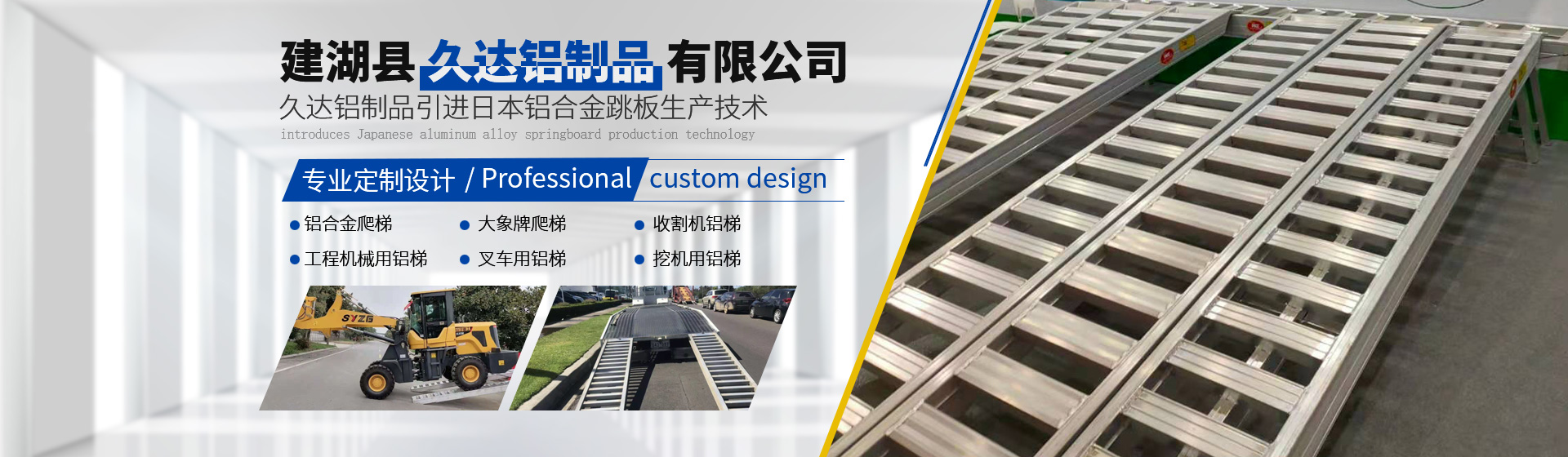 廣泛應用于聯合收割機、拖拉機、插秧機、挖掘機等機械建湖縣久達鋁制品有限公司引進日本鋁合金跳板生產技術,專業生產高強度鋁合金跳板,廣泛應用于聯合收割機、拖拉機、插秧機、挖掘機等機械。 我公司于2012年引進日本全鋁合金跳板生產技術。經過四年的學習、探索、生產、銷售,現已全面消化吸收鋁合金跳板技術、總結出一套成熟的生產、使用、售后服務經驗;為提高產品質量,加大設備投入,購買歐洲進口的鋁合金焊接設備和切割設備,保證產品的焊接強度和精度;結合中國收割機作業量大、作業條件復雜、中國收割機更重等特點,生產出更適合中國國情的高強度鋁合金跳板,承載力更強,抗疲勞效果更好,使用周期更長,同等使用條件下是市場上仿制產品使用壽命的1.5倍以上。大象牌鋁梯成為中國鋁梯行業馳名品牌。